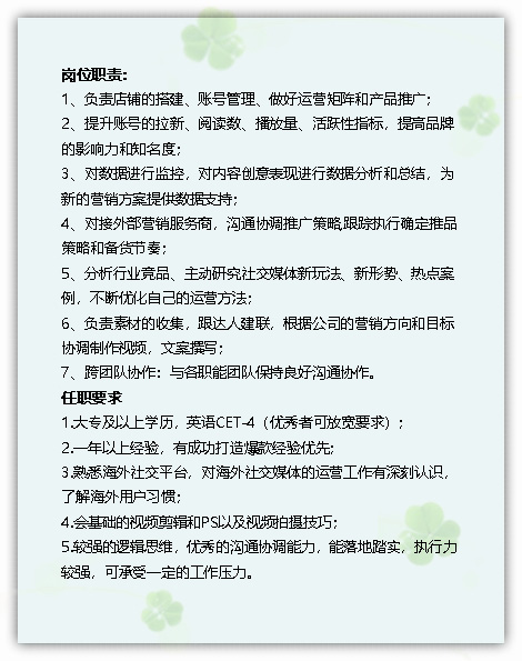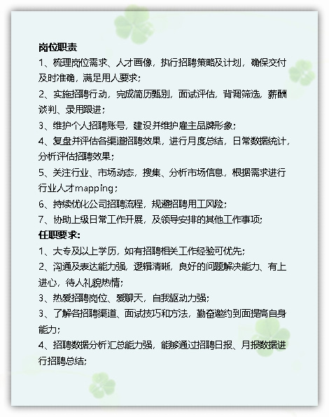 3、完善的职业培训。为员工提供系统化的培训服务,提升员工的岗位技能和综合素质。